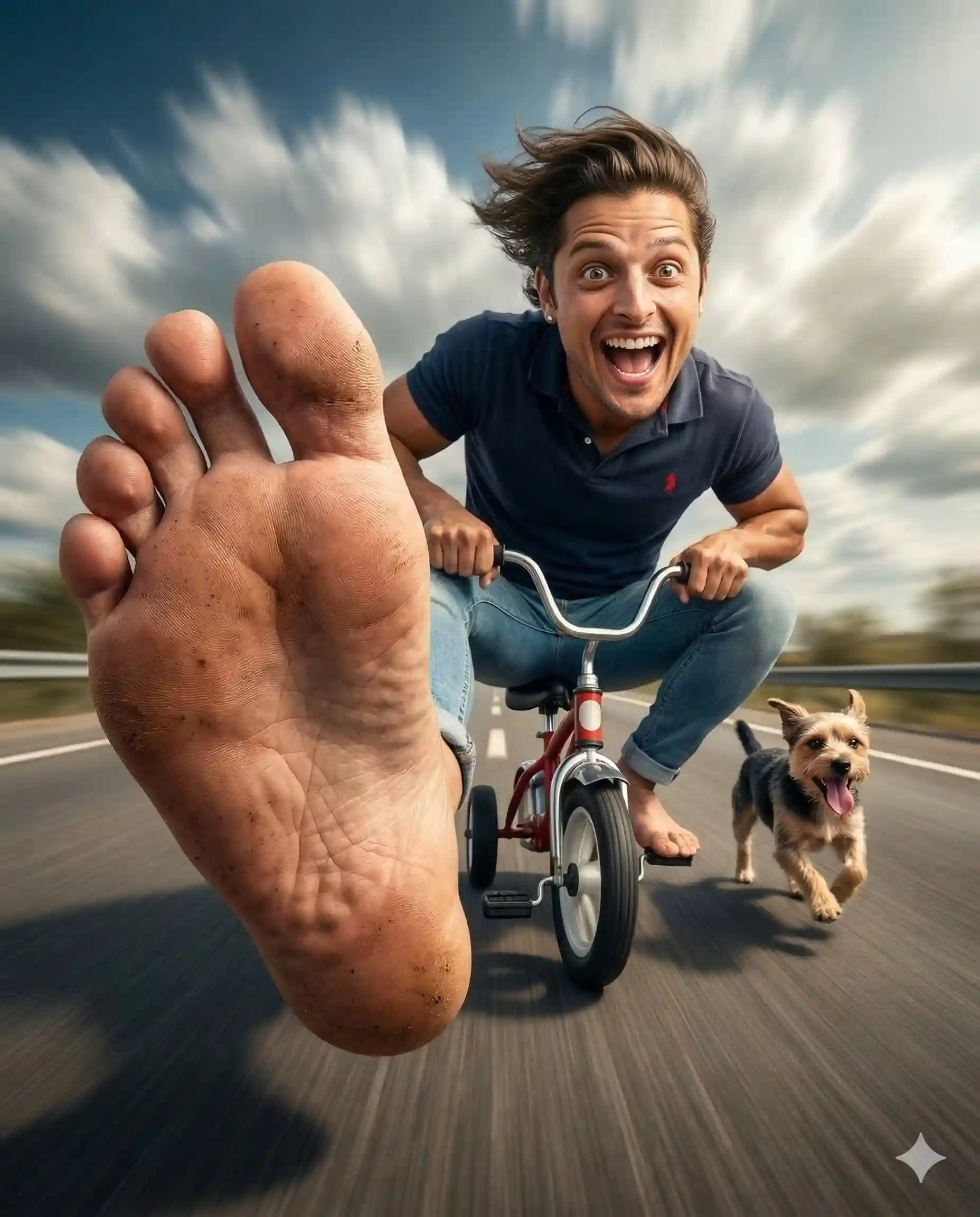 The sole shows hyper-realistic texture: skin folds, pores, natural wrinkles, subtle dirt and highlights.